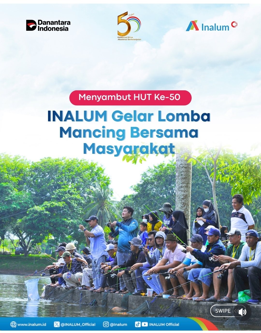 Batu Bara — Dalam rangka menyambut Hari Ulang Tahun (HUT) ke-50, PT Indonesia Asahan Aluminium (INALUM) kembali menggelar Lomba Memancing di Danau Tanjung Gading, Minggu (14/12/2025). Kegiatan ini melibatkan karyawan INALUM serta masyarakat di sekitar wilayah operasional perusahaan, dan berlangsung meriah penuh kebersamaan.